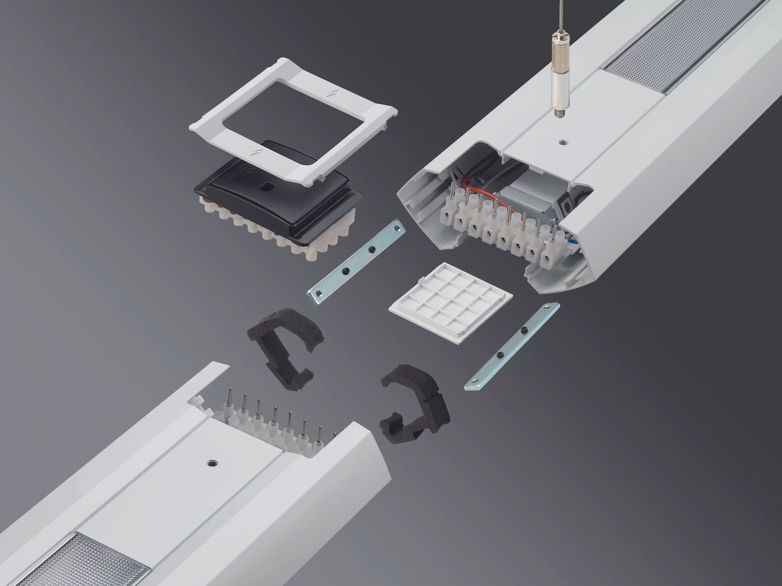 Unity was developed from a concept in 2013 into a linear LED luminaire with bi-directional output. Many of the features that found favour with installers on the long established Ovation 65 product were carried over such as the rapid connector, and the horizontal & vertical swivel joints to make easy work of stairs or curving architecture.